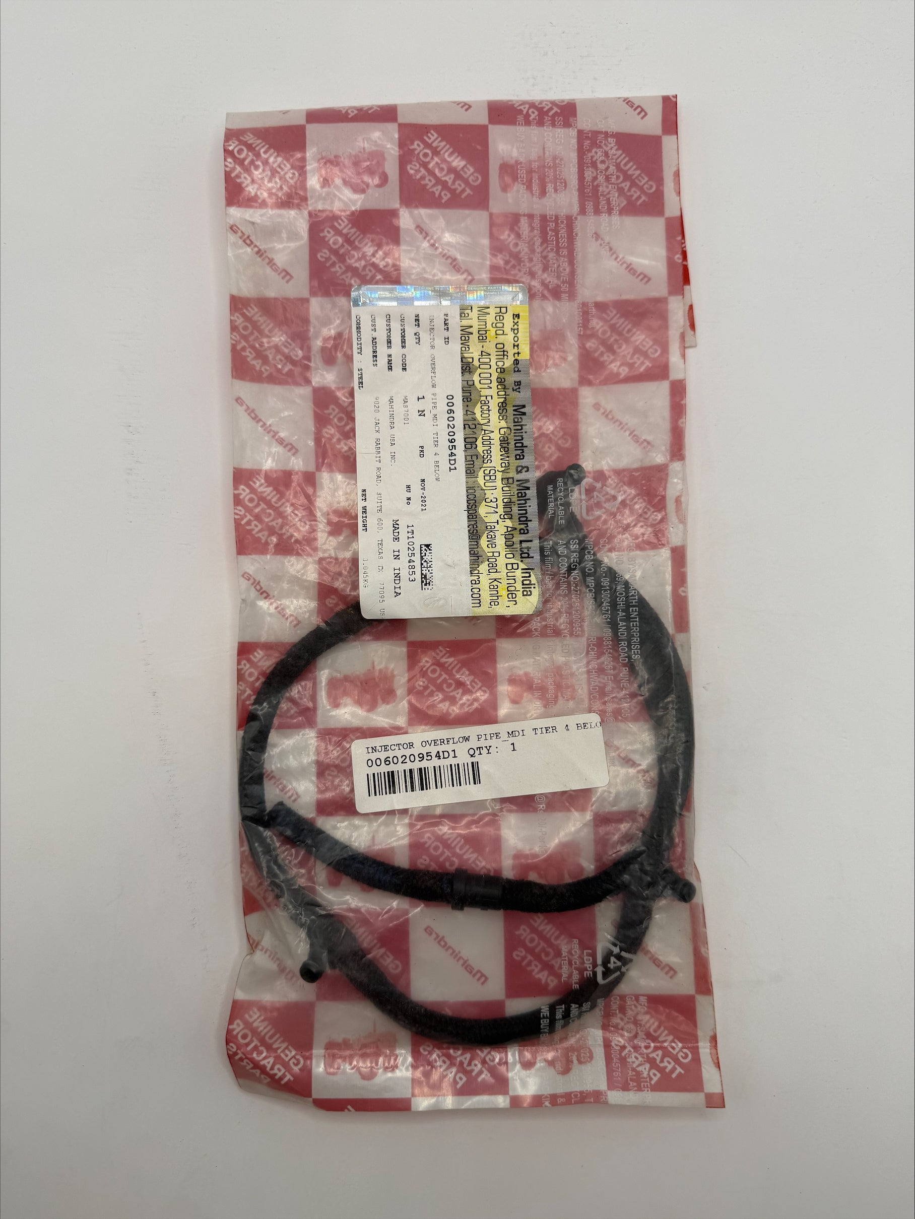 Mahindra Injector Overflow Pipe 006020954D1